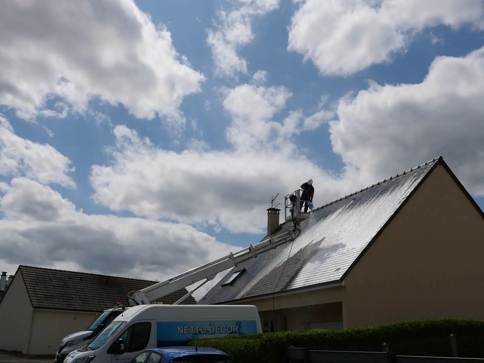 - nettoyage de façades, bardages, toitures et moquettes.