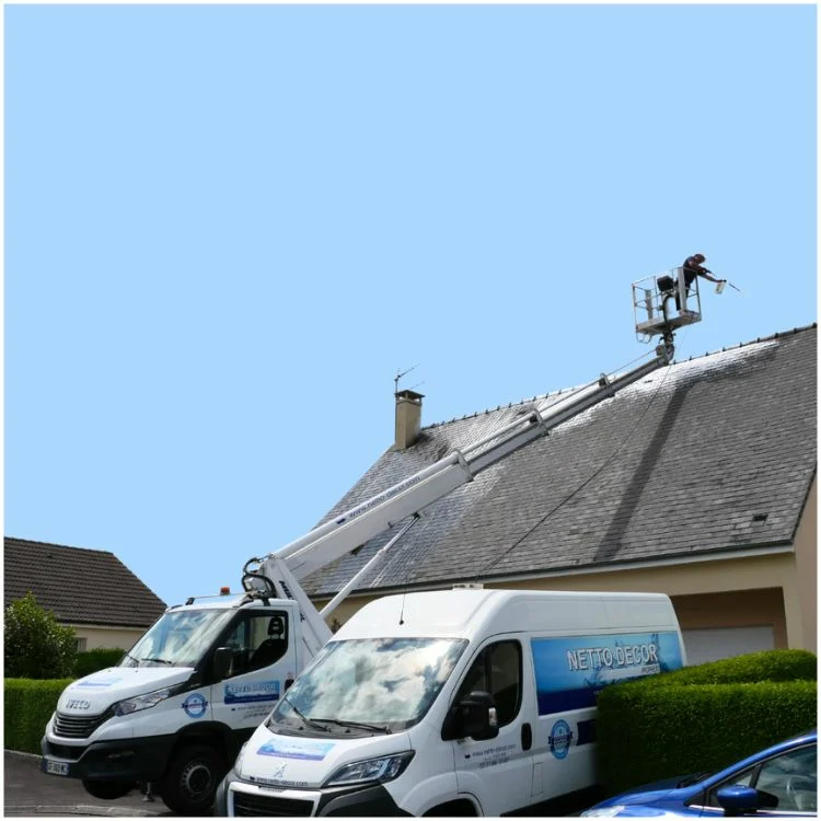 Netto Décor Propreté, votre entreprise de démoussage et de nettoyage de toitures, met à votre disposition une équipe de professionnels qualifiés et spécialisés pour ce type de nettoyage. Formées et mobiles pour répondre à vos impératifs, nos équipes de techniciens se tiennent à votre disposition. Plus qu’un simple nettoyage haute pression, notre prestation comprend diverses étapes nécessaires au bon entretien de votre toiture. En cela, chez Netto Décor Propreté, nous avons à coeur de vous proposer un travail irréprochable et minutieux pour vous satisfaire.
