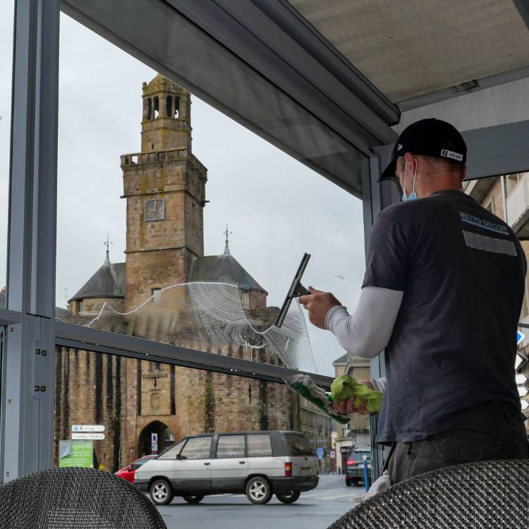 - Le nettoyage des vitrines, vitres et baies vitrées.
